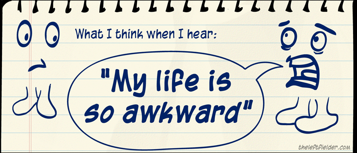 So when you say “my life is so awkward” I don’t hear that you’re having a hard time making life decisions, or dealing with the pressing anxiety that comes with realising every choice you make in life narrows your options to the point where you feel paralysed with anxiety over what might have been. I mean, I get it, but that’s not what I choose to hear.