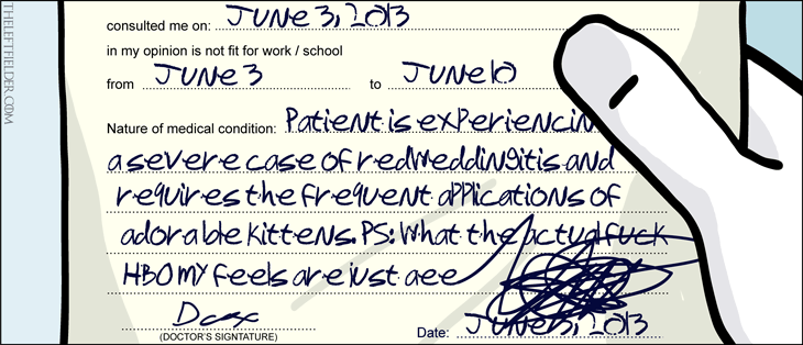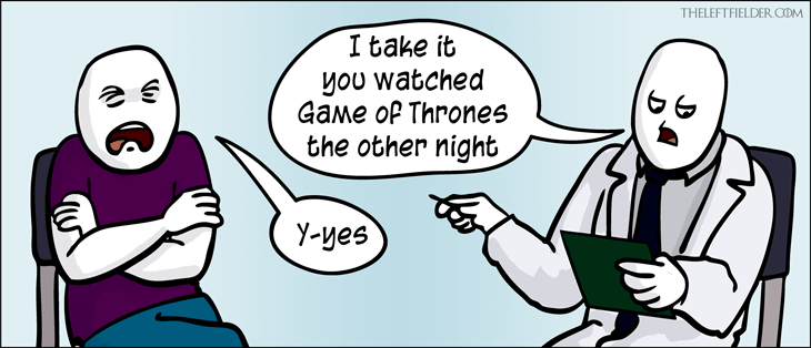 Game of Waiting RoomsWhile very popular, Game of Thrones can cause some unusual symptoms, such as red-wedding-itis. Are you at risk?Share this: Click to share on Facebook (Opens in new window) Facebook Click to share on LinkedIn (Opens in new window) LinkedIn Click to share on Reddit (Opens in new window) Reddit Click to share on X (Opens in new window) X Click to share on Tumblr (Opens in new window) Tumblr Click to share on Telegram (Opens in new window) Telegram Click to share on WhatsApp (Opens in new window) WhatsApp Related