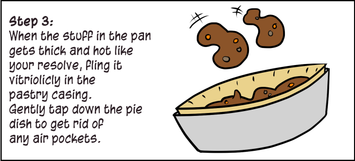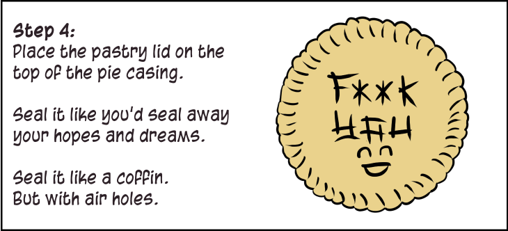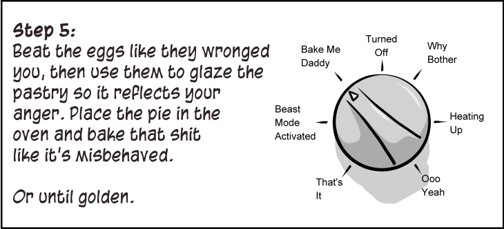 Feel the need to let off some steam? Just follow this zesty pie recipe and use it to relish in your revenge fantasies! And make sure that they just stay as fantasies, yeah? Because that shit is hella illegal in most countries, okay? Okay. Good talk. Put the beer down.